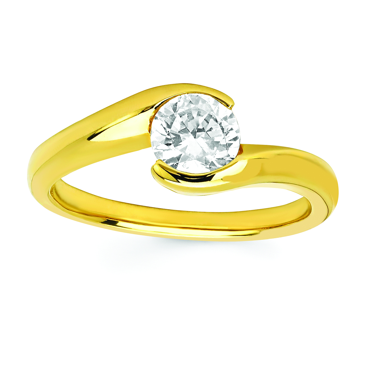 Engagement Ring Modern Bridal: Shown with 3/4 Ct. Round Center Diamond in 14K Gold