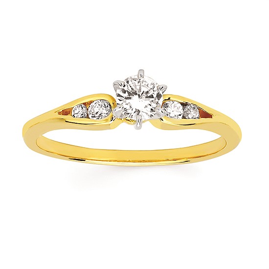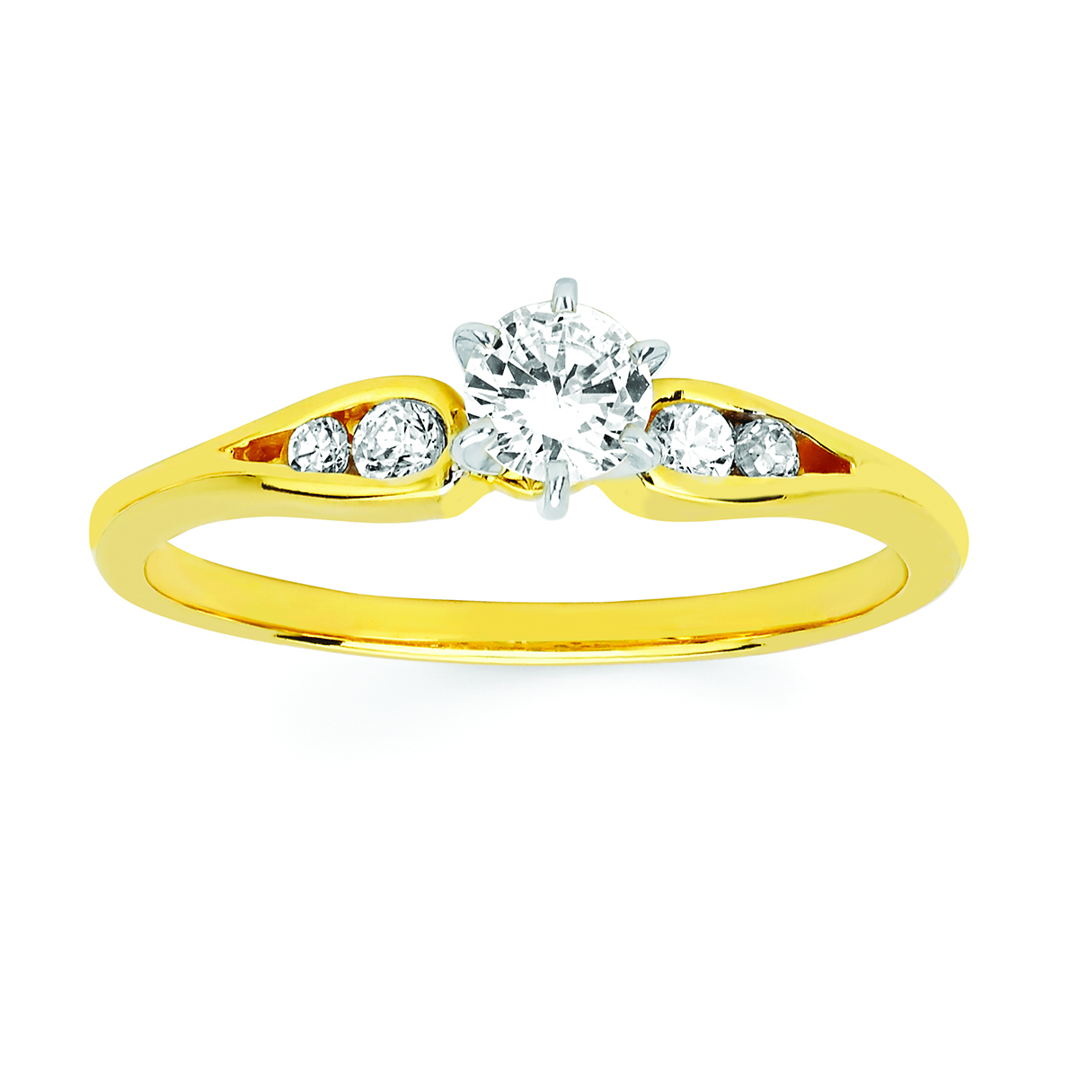 Engagement Ring Classic Bridal: 1/10 Ctw. Diamond Semi Mount shown with 1/5 Ct. Round Center Diamond in 14K Gold
