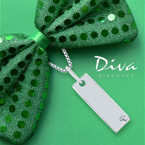 Diva Diamonds® Rectangle Disc Pendant In Sterling Silver With .01 Ct. Diamond With 18" Box Chain (Adjustable To 16") And Lobster Claw Clasp