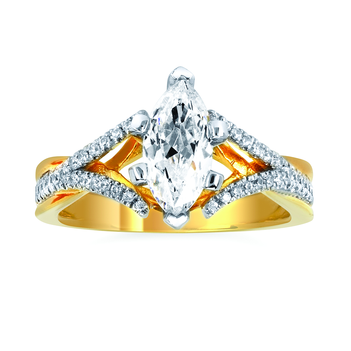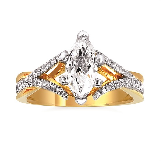 Engagement Ring Forever ElegantĀ® 1/5 Ctw. Diamond Semi Mount shown with 1 Ct. Marquise Center Diamond in 14K Gold