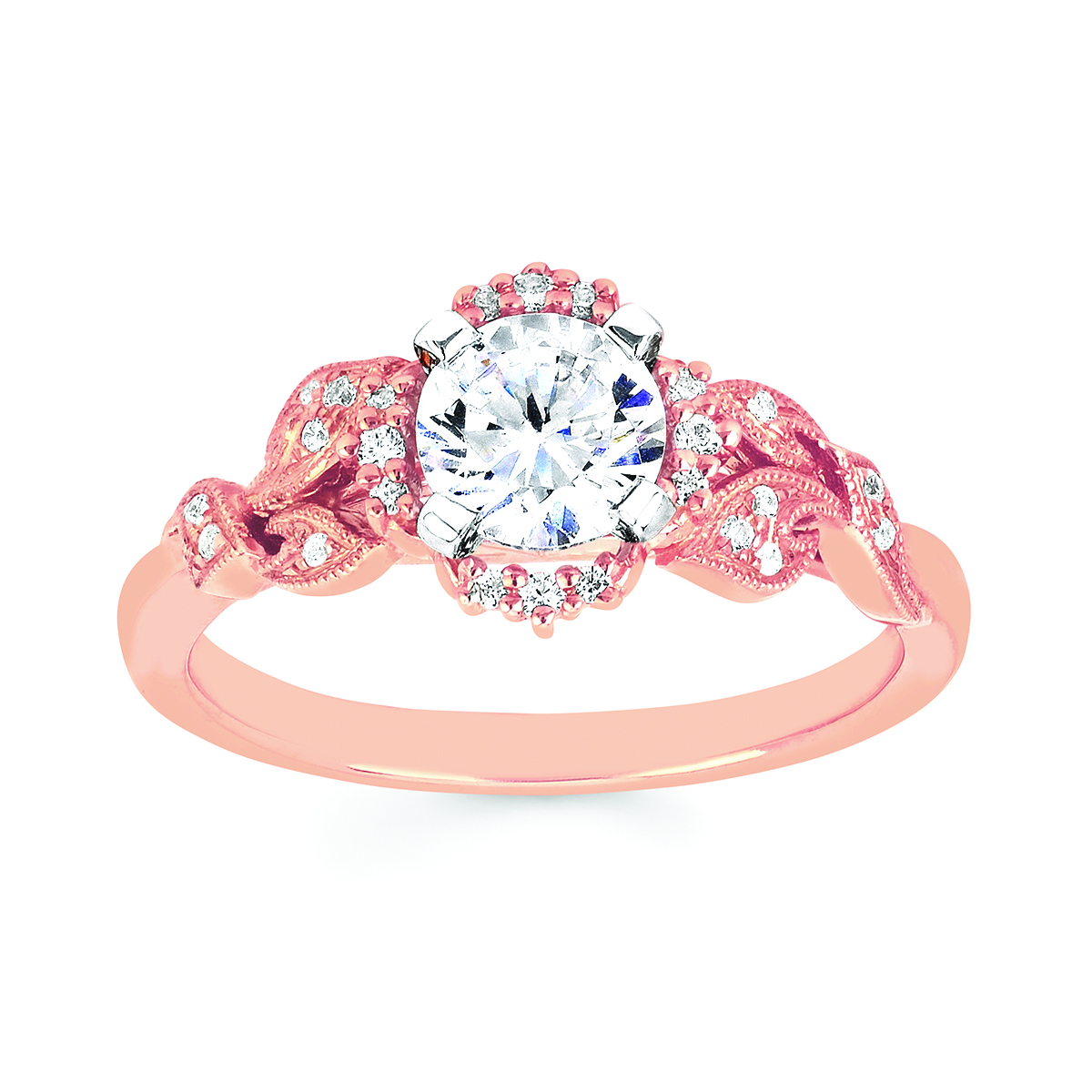 Engagement Ring Forever ElegantĀ® 1/10 Ctw. Diamond Semi Mount shown with 3/4 Ct. Round Center Diamond in 14K Gold