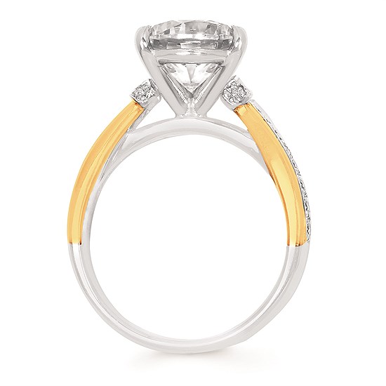 Engagement Ring Classic Bridal: 1/4 Ctw. Diamond Semi Mount shown with 3 Ct. Round Center Diamond in 14K Gold