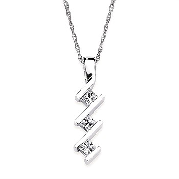 1/2 Ctw. Princess Cut 3 Stone Diamond Drop Pendant In 14K Gold With 18" Fine Rope Chain With 18" Chain
