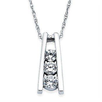 1/4 Ctw. 3 Stone Diamond Ladder Pendant In 14K Gold With 18" Chain