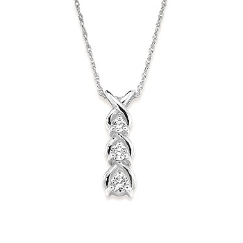 1/4 Ctw. 3 Stone Diamond Drop Pendant In 14K Gold With 18" Fine Rope Chain With 18" Chain